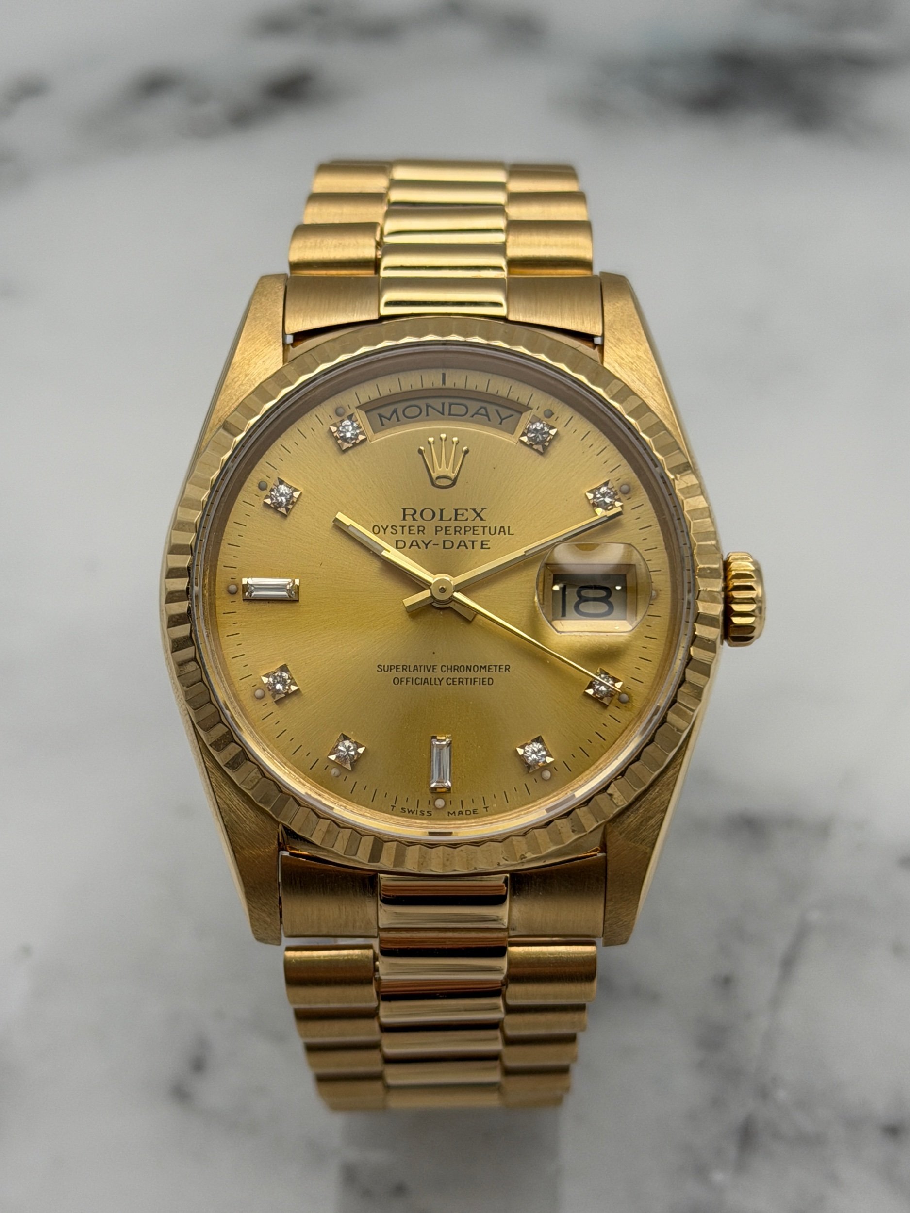 Rolex Day-Date 36 - 18238 - Year 1990 - Champagne Diamond Dial