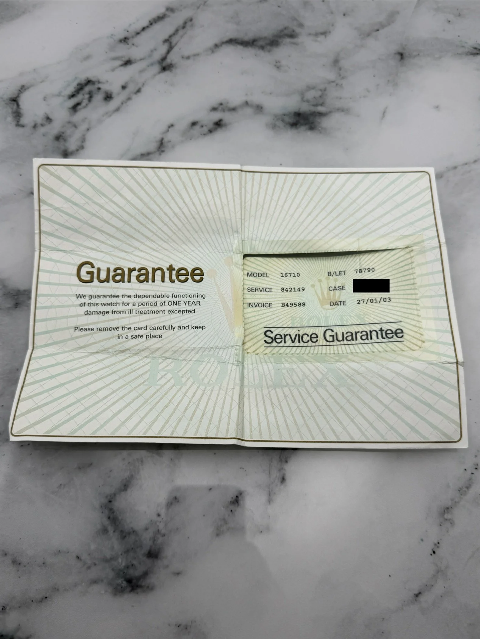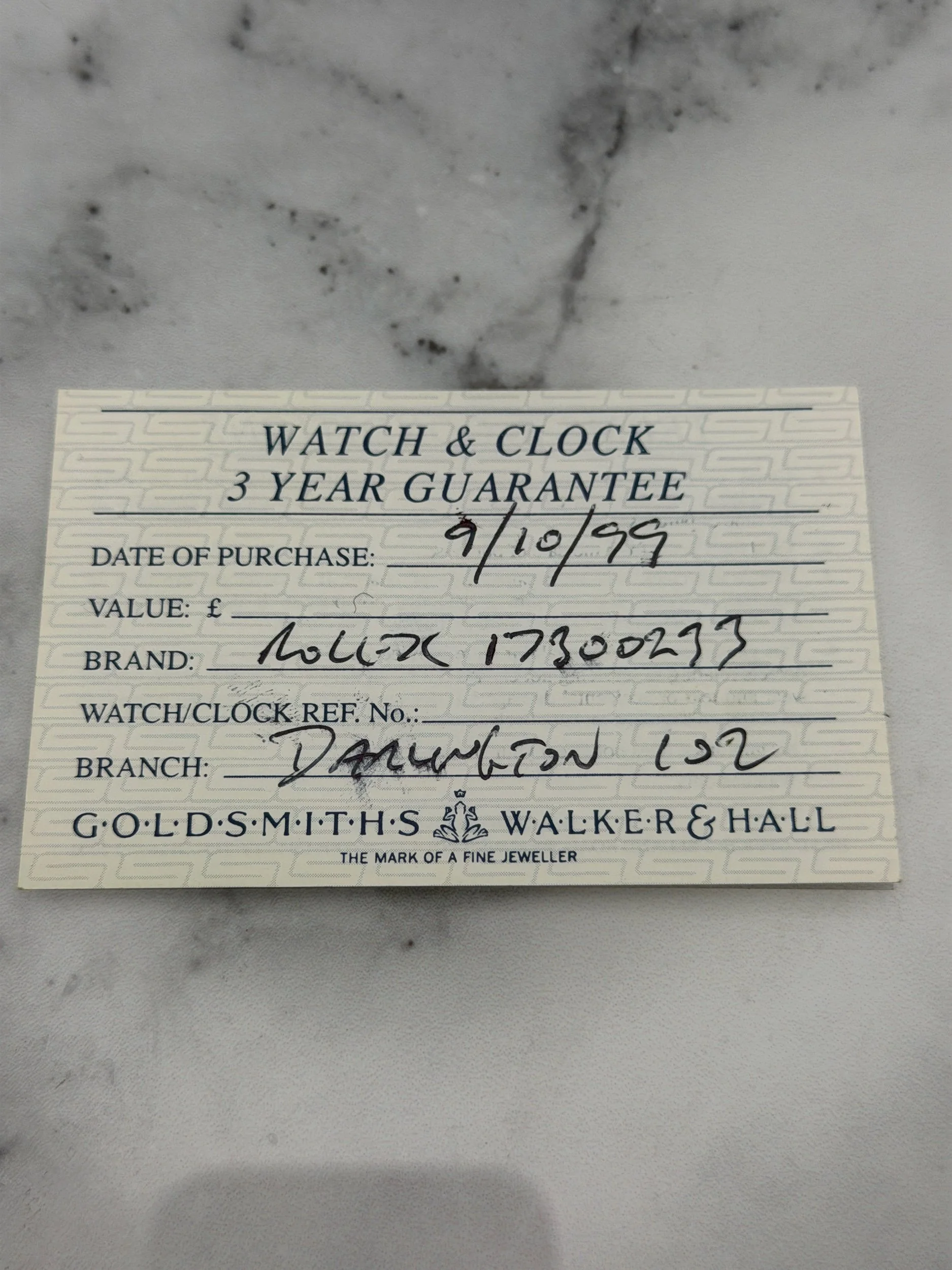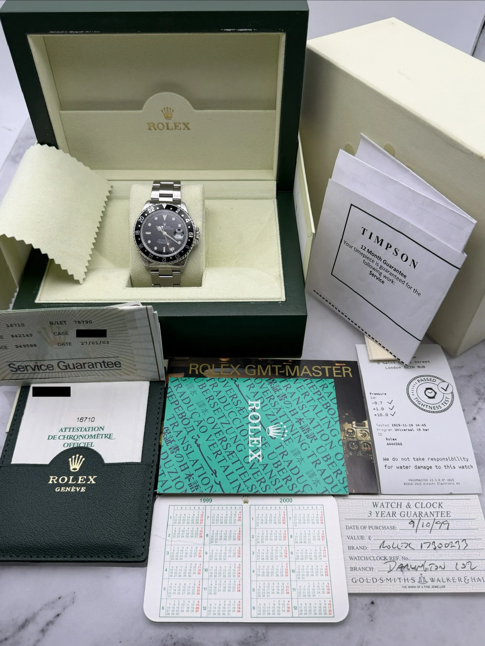 Service history includes a full Rolex service 2003, new glass and service December 2020 and again in August 2025. Comes with its original Goldsmith purchase receipt also.