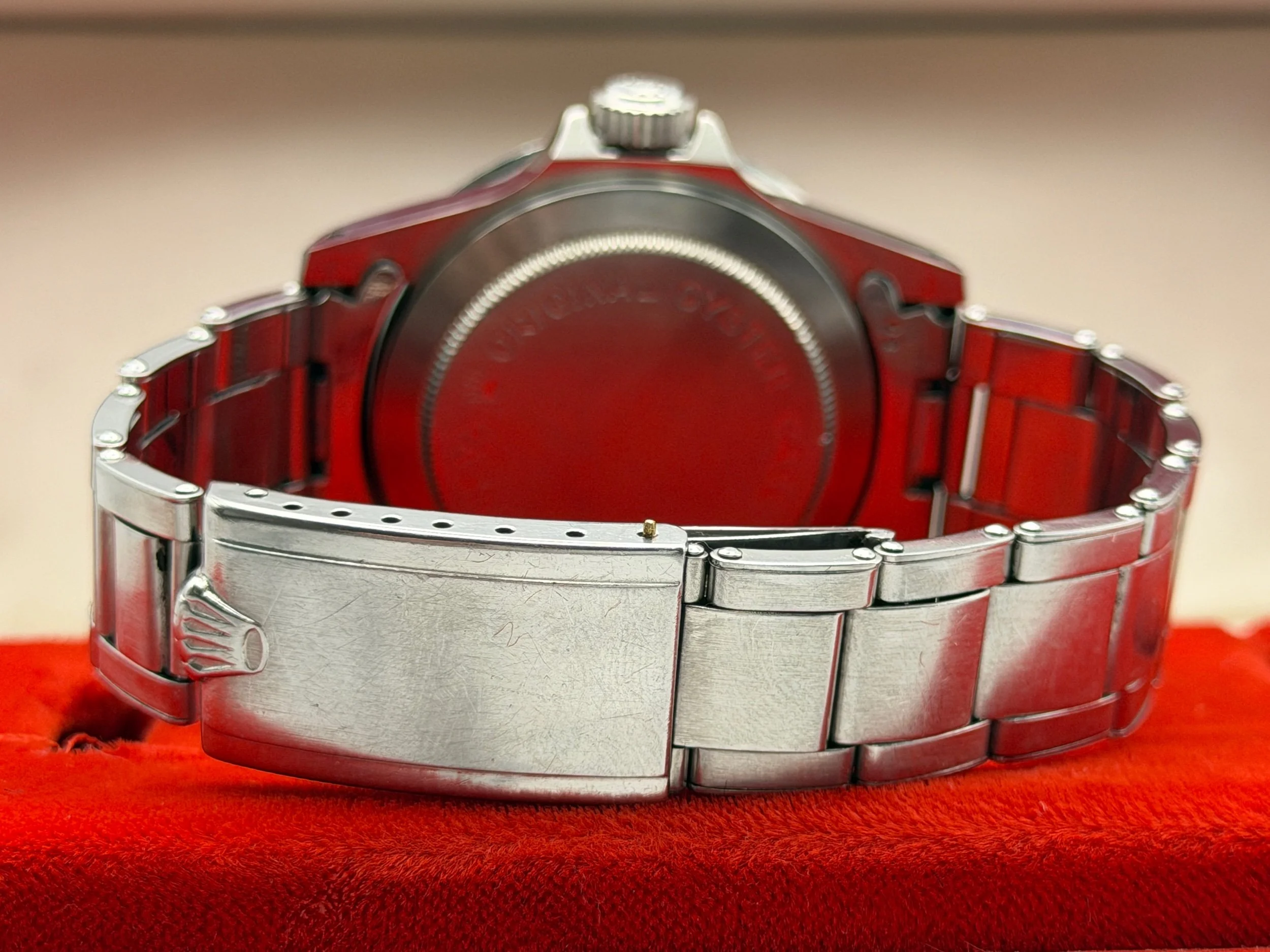 The case is razor sharp and has never been polished, it's original folded clasp expandable bracelet is also superb. We highly recommend any collector to see this piece in person to truly appreciate its totally originality. Comes with its original box and unwritten papers. An amazing once in a lifetime investment piece.