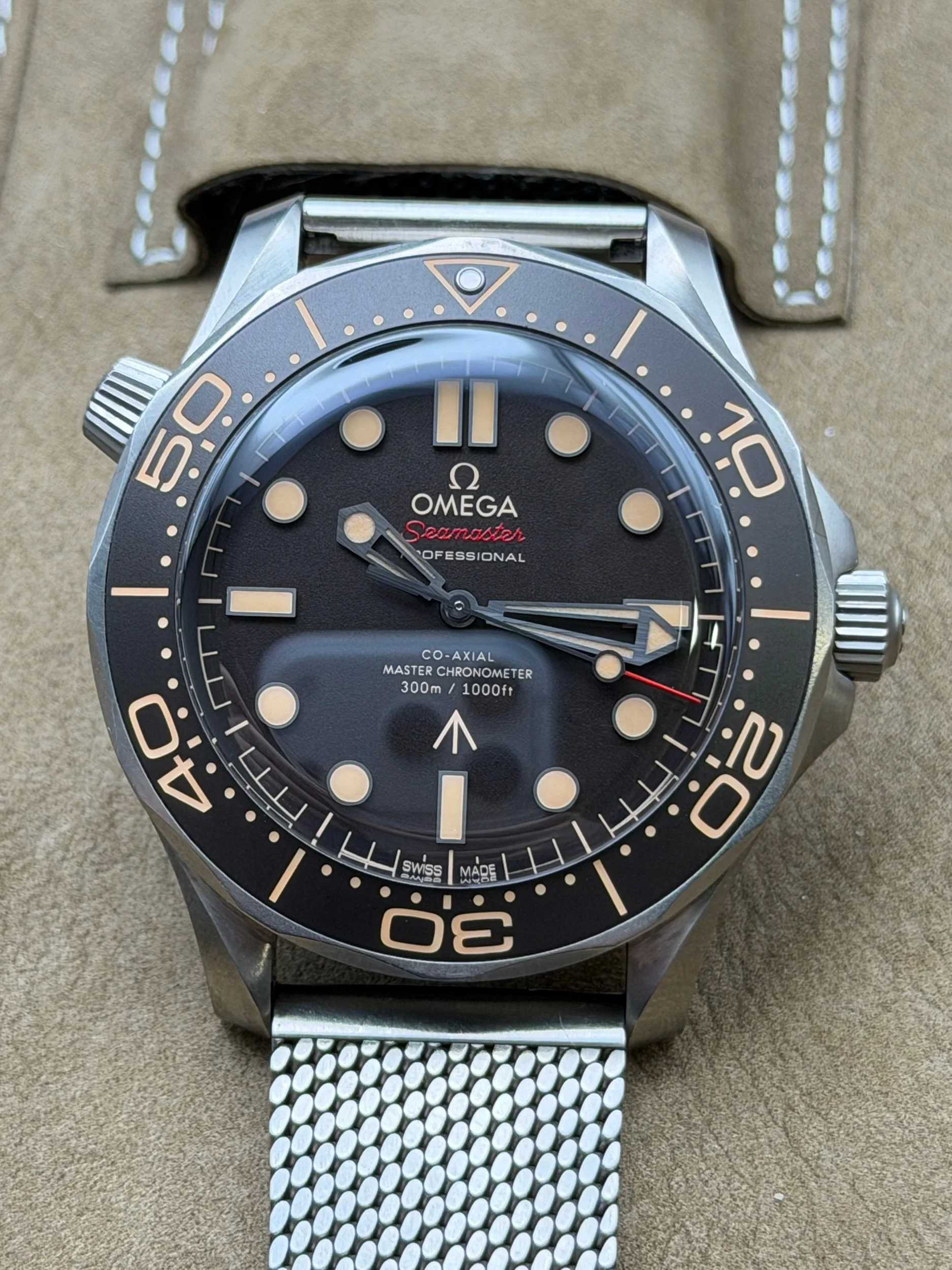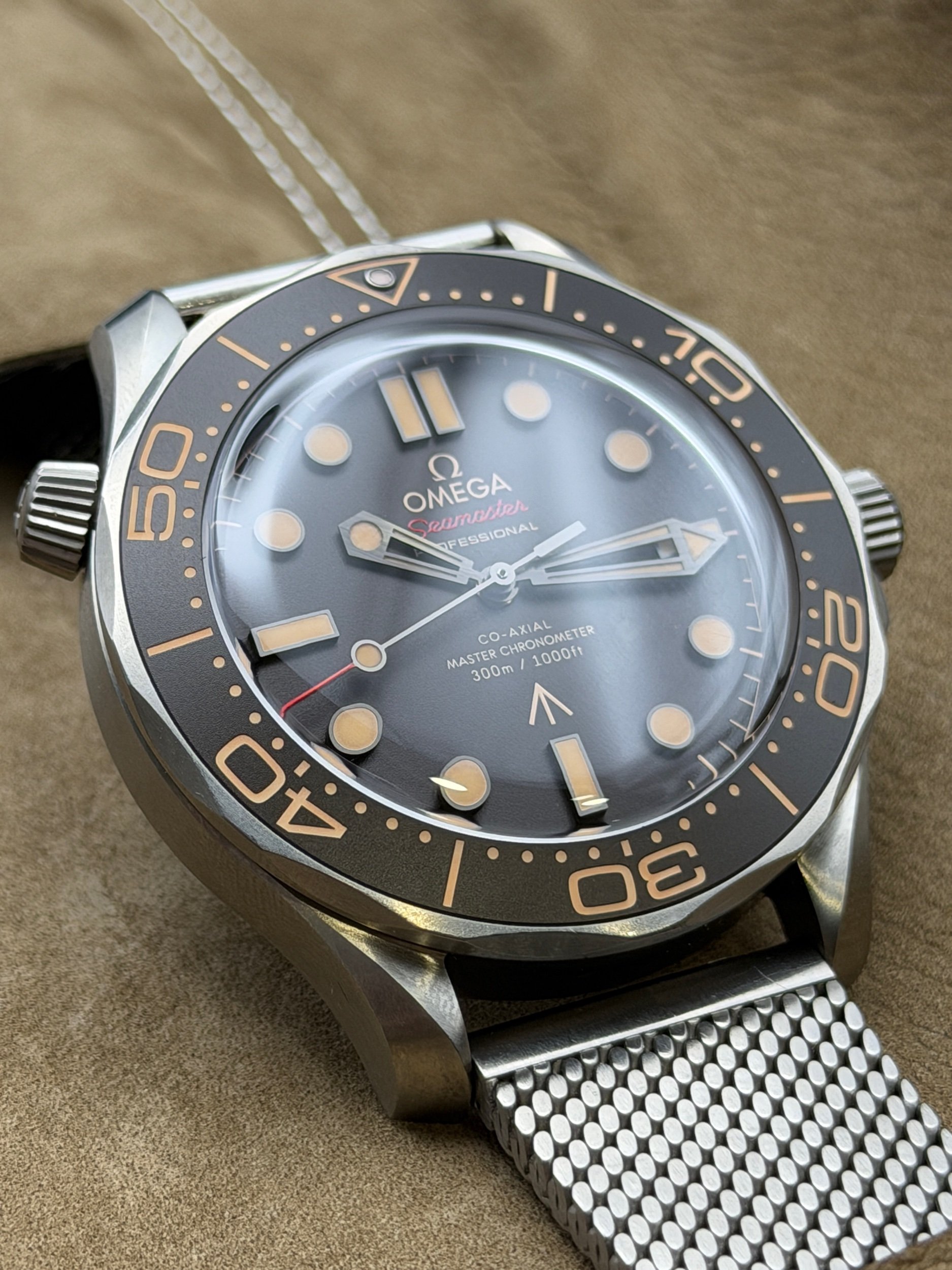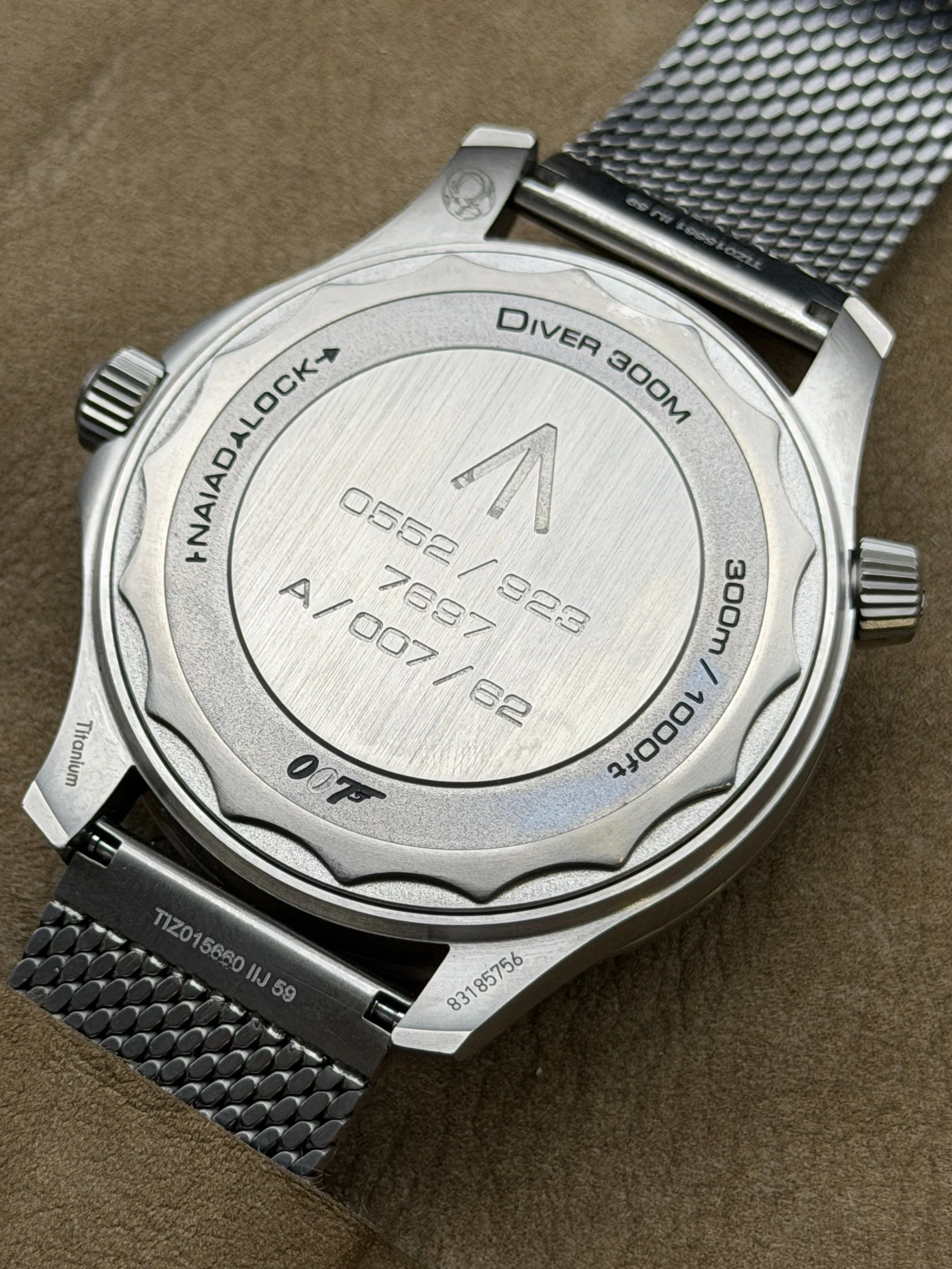 For sale is a stunning Omega Seamaster 300M “No Time To Die” 007 James Bond Edition crafted in lightweight titanium, with a titanium bracelet also. The watch is in excellent overall condition, with only minor signs of wear consistent with careful use (clearly shown in the photos).