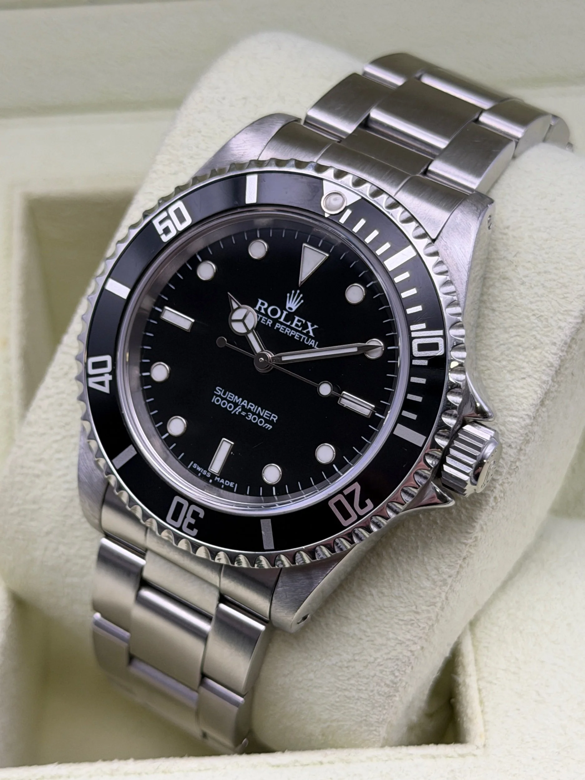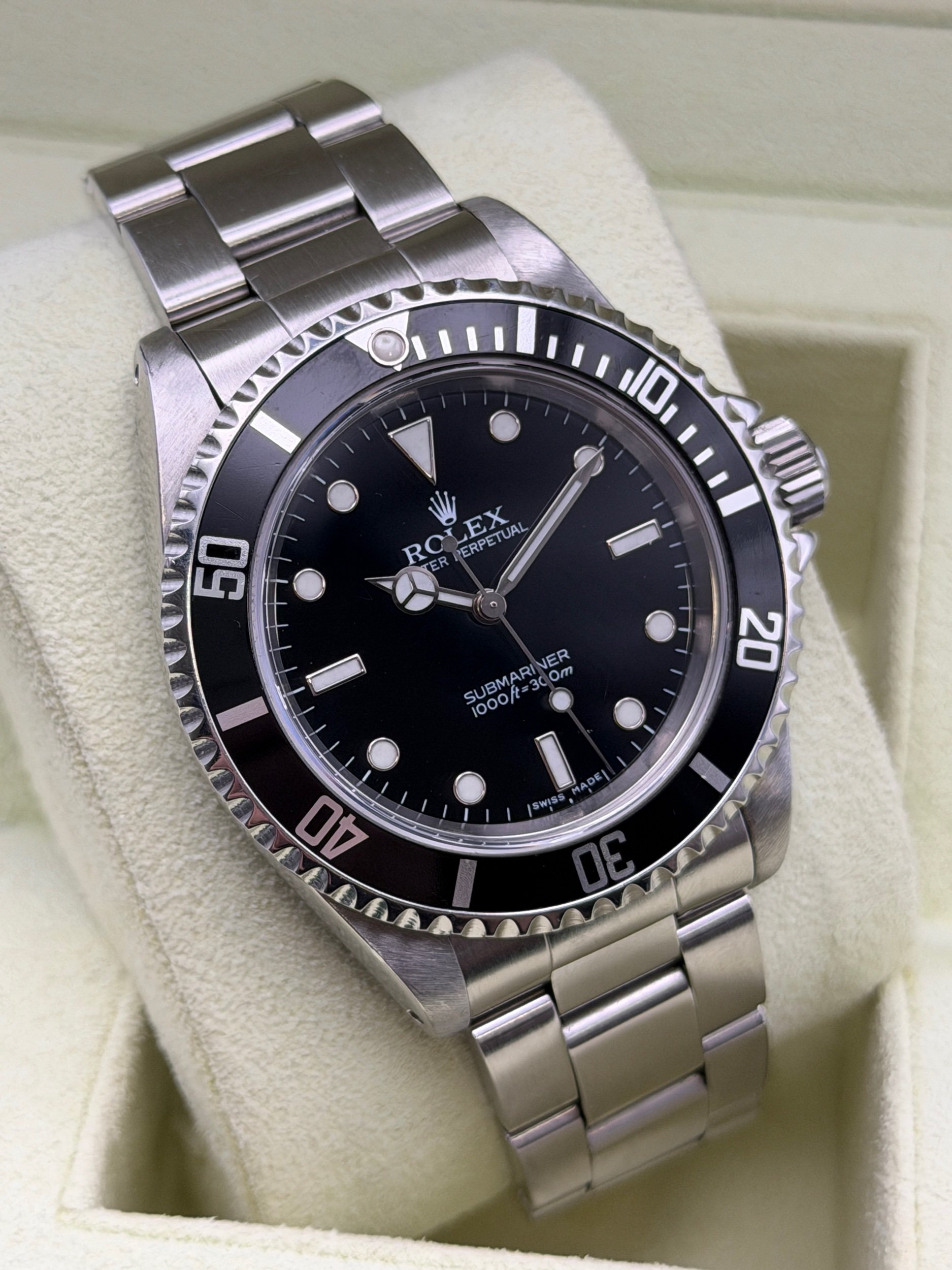For sale is a clean example of the classic black rolex submariner in stainless steel, completely original with the correct clasp code (MA1), correct end links (501B) and correct bracelet (93150). Presented in great condition with a sharp, clean case and strong bracelet.